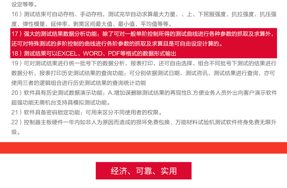 產品型號:JQ-8750 品牌:劍 喬 用途:本系列機廣泛用于各類五金、金屬、塑膠、橡膠料、紙品、包裝、鞋類、皮革、服裝、紡織、建材、絕緣體、電線、電纜、端子等各類材料。測試其拉伸、撕裂、剝離、抗壓、彎曲、抗剪切、定